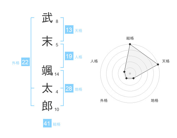 武末 颯太郎さんの天格は13画の5点!