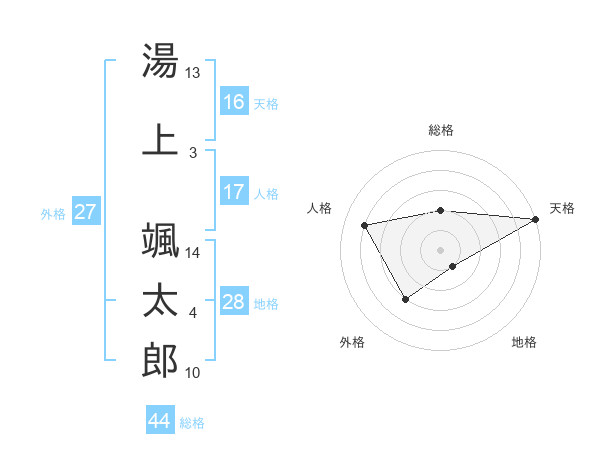 湯上 颯太郎さんの天格は16画の5点!