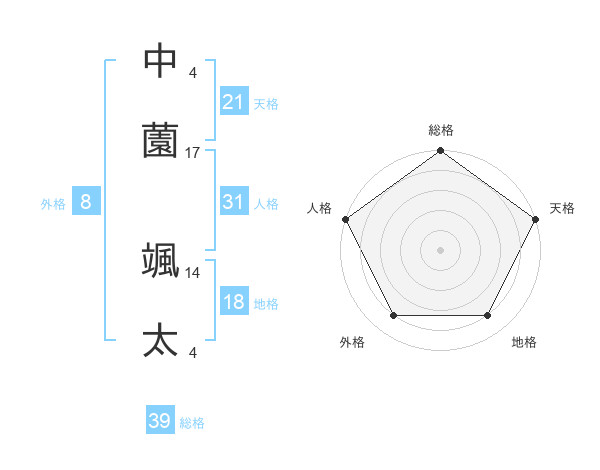 中薗 颯太さんの天格は21画の5点!