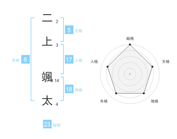 二上 颯太さんの総格は23画の5点!