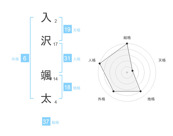 入沢 颯太さんを姓名の画数から五運を鑑定