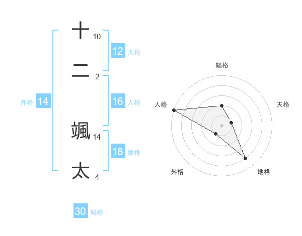 十二 颯太さんの総格は30画の2点!