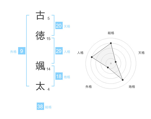 古徳 颯太さんの総格は38画の4点!
