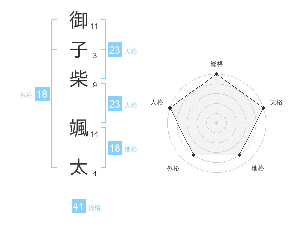 御子柴 颯太さんの天格は23画の5点!