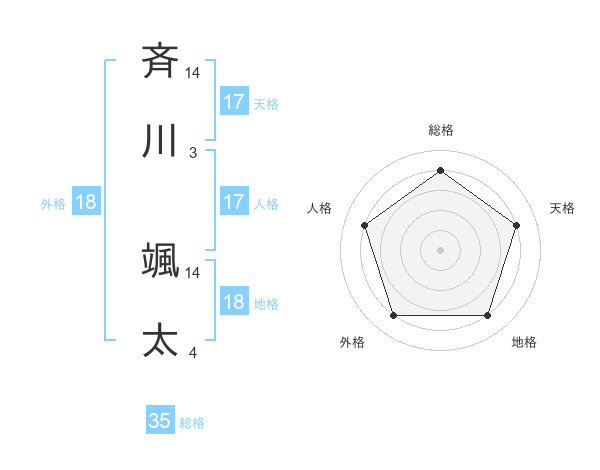斉川 颯太さんの天格は17画の4点!