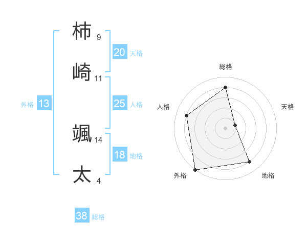 柿崎 颯太さんの総格は38画の4点!