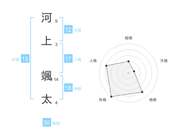 河上 颯太さんの総格は30画の2点!