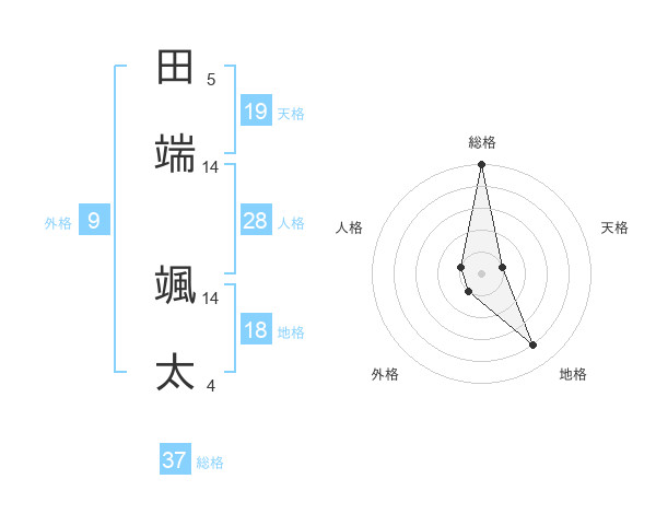田端 颯太さんの総格は37画の5点!