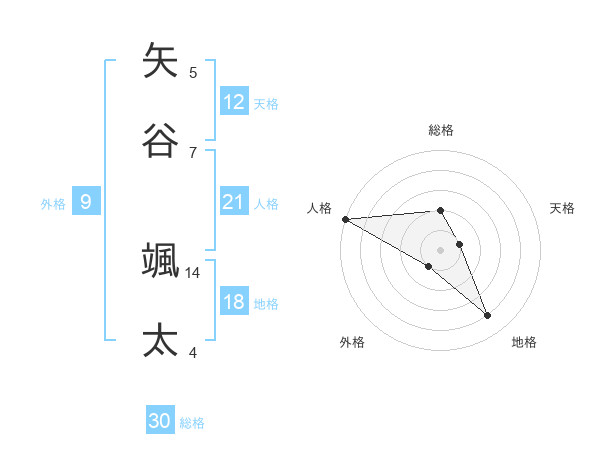 矢谷 颯太さんの天格は12画の1点!