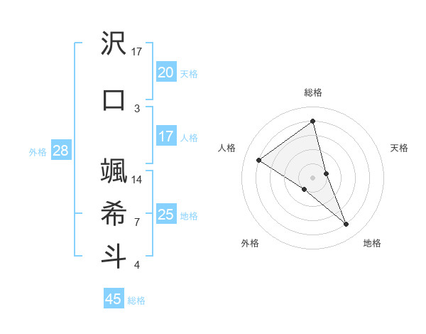 沢口 颯希斗さんを姓名の画数から五運を鑑定