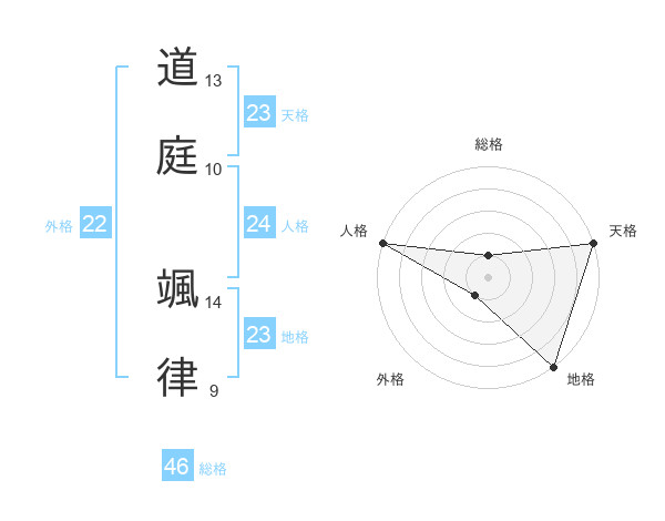 道庭 颯律さんを姓名の画数から五運を鑑定