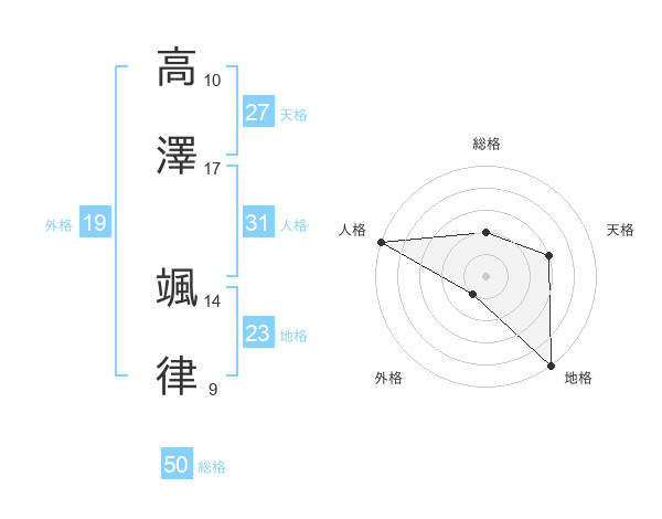高澤 颯律さんを姓名の画数から五運を鑑定