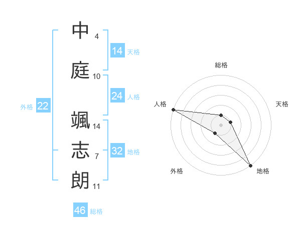中庭 颯志朗さんの総格は46画の1点!