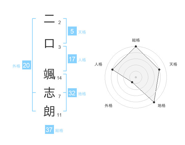 二口 颯志朗さんの総格は37画の5点!