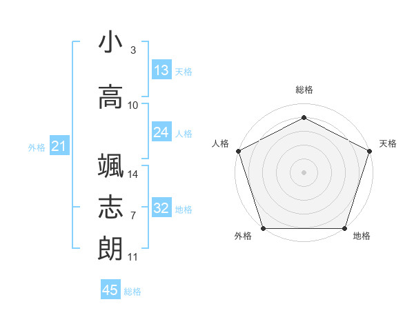 小高 颯志朗さんの総格は45画の4点!