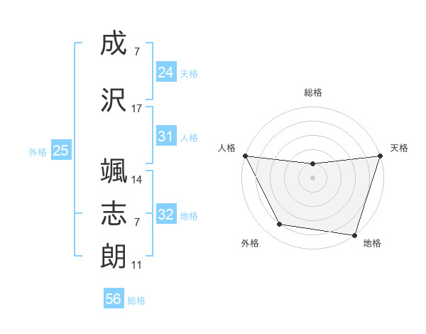 成沢 颯志朗さんの総格は56画の1点!