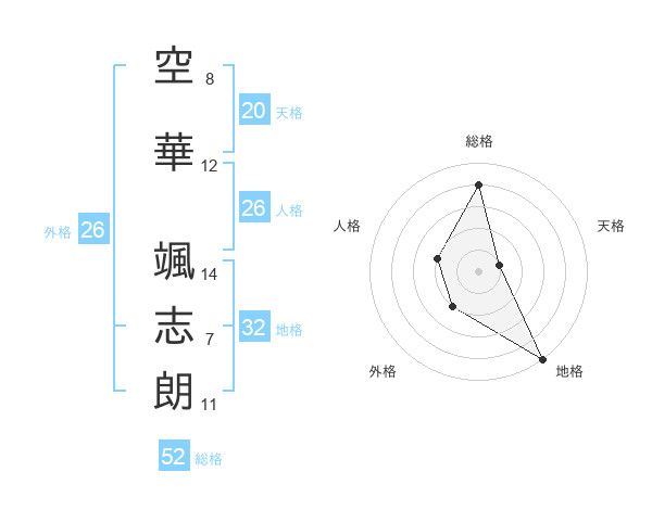 空華 颯志朗さんの総格は52画の4点!