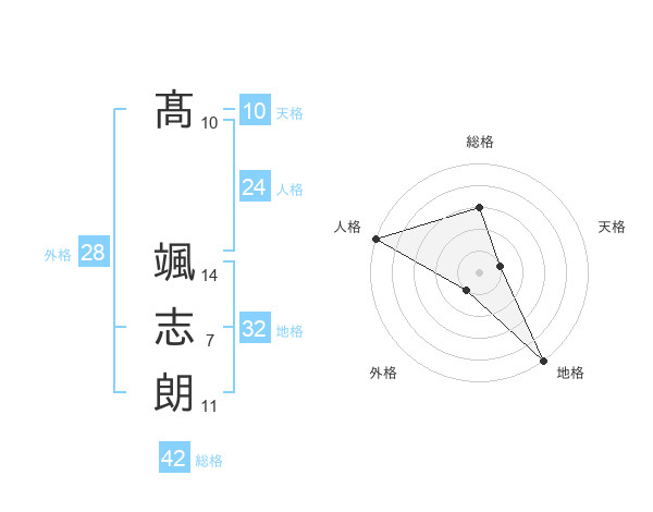 髙 颯志朗さんの総格は42画の3点!