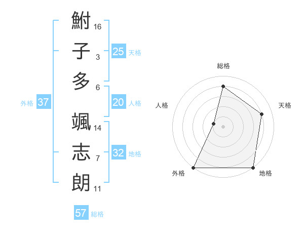 鮒子多 颯志朗さんを姓名の画数から五運を鑑定