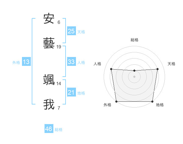安藝 颯我さんを姓名の画数から五運を鑑定