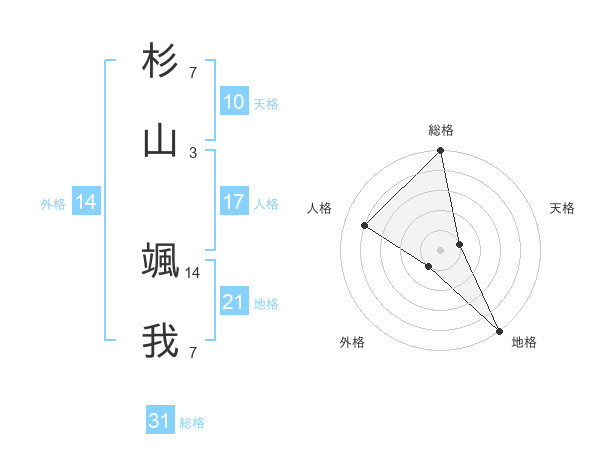 杉山 颯我さんの総格は31画の5点!