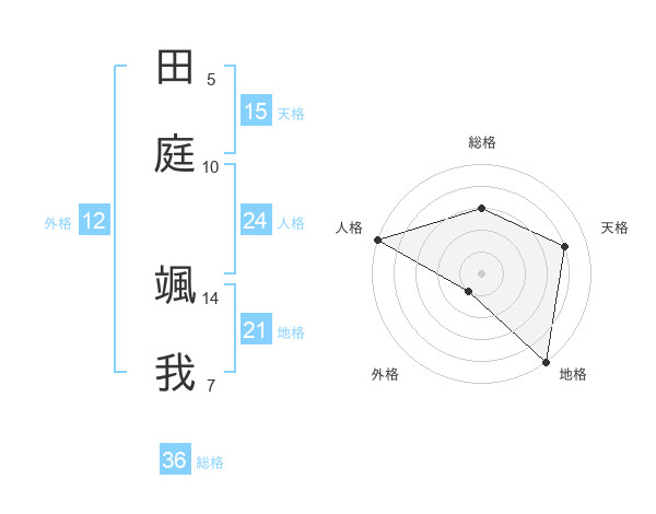 田庭 颯我さんの天格は15画の4点!