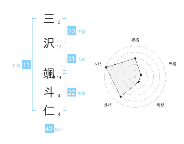 三沢 颯斗仁さんの外格は11画の4点!