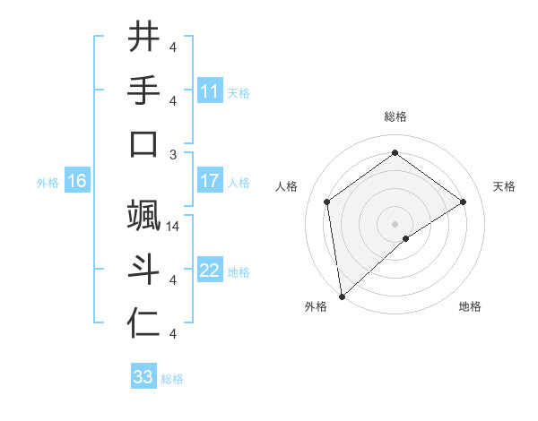 井手口 颯斗仁さんを姓名の画数から五運を鑑定