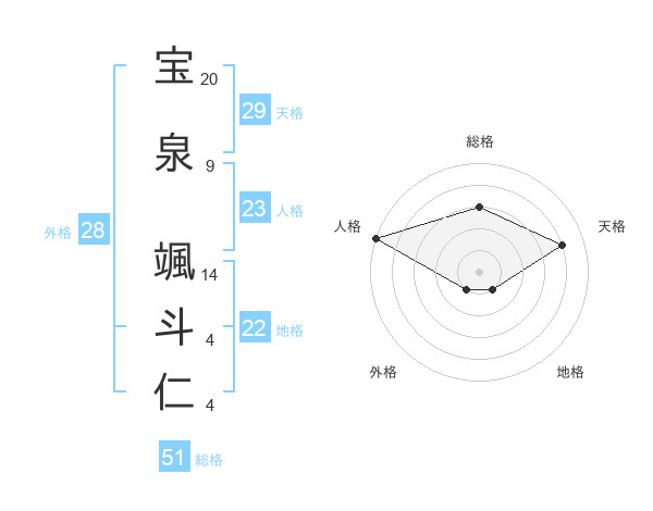 宝泉 颯斗仁さんを姓名の画数から五運を鑑定