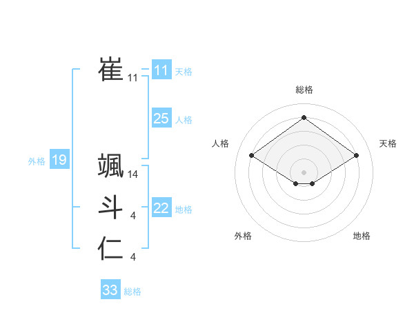 崔 颯斗仁さんを姓名の画数から五運を鑑定