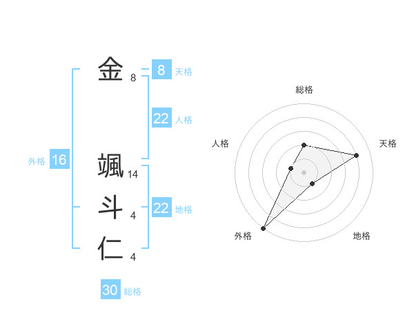 金 颯斗仁さんの地格は22画の1点!