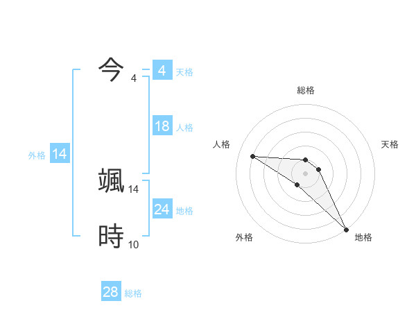 今 颯時さんの総格は28画の1点!