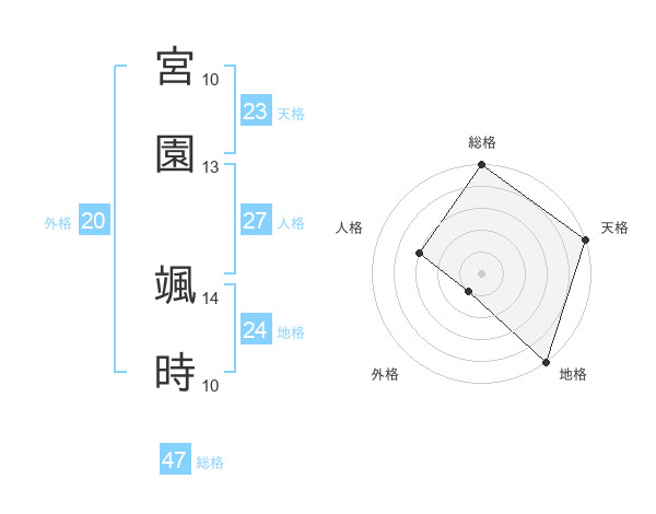 宮園 颯時さんを姓名の画数から五運を鑑定