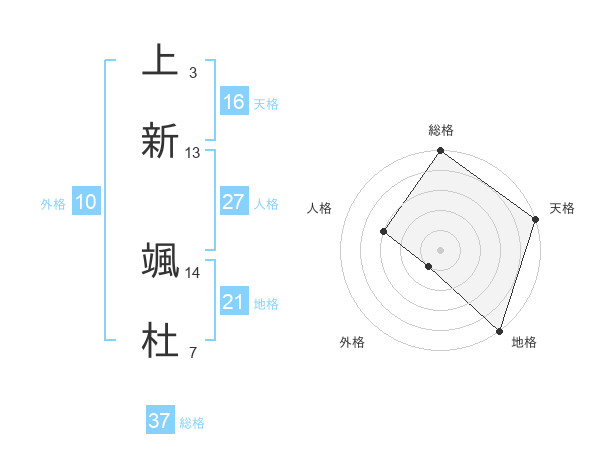 上新 颯杜さんの総格は37画の5点!