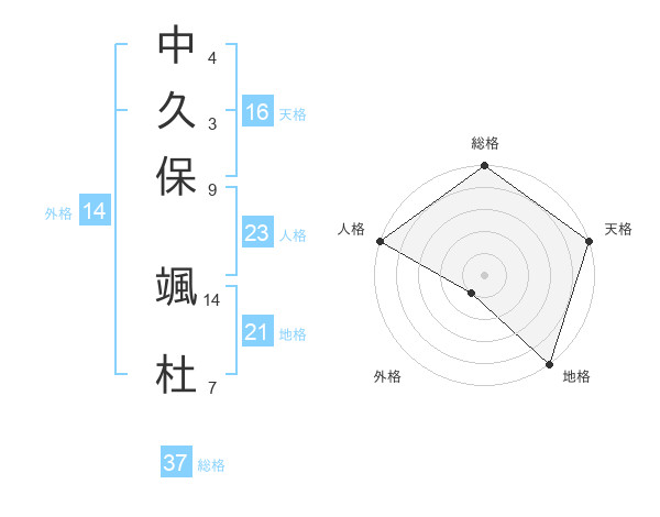 中久保 颯杜さんの総格は37画の5点!