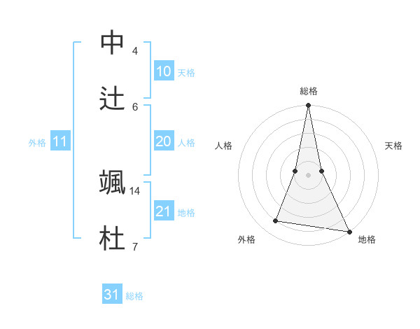 中辻 颯杜さんの総格は31画の5点!
