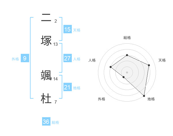 二塚 颯杜さんの天格は15画の4点!