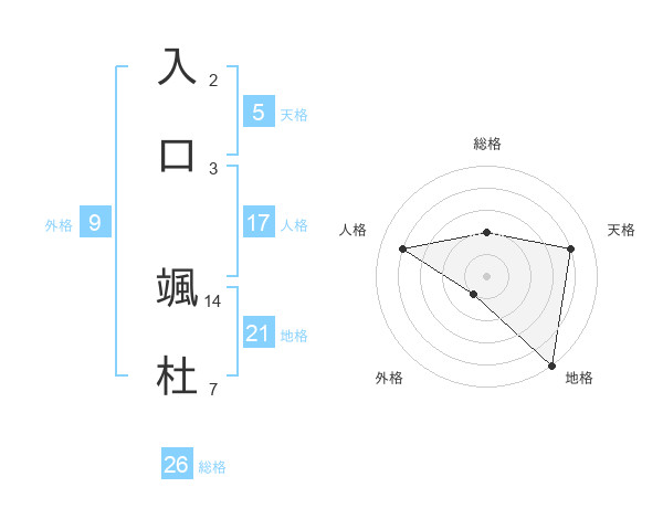 入口 颯杜さんの総格は26画の2点!