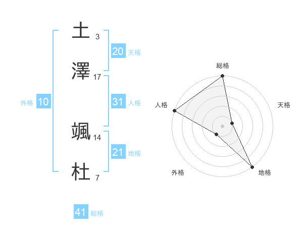土澤 颯杜さんの地格は21画の5点!