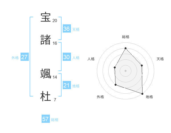 宝諸 颯杜さんの総格は57画の4点!