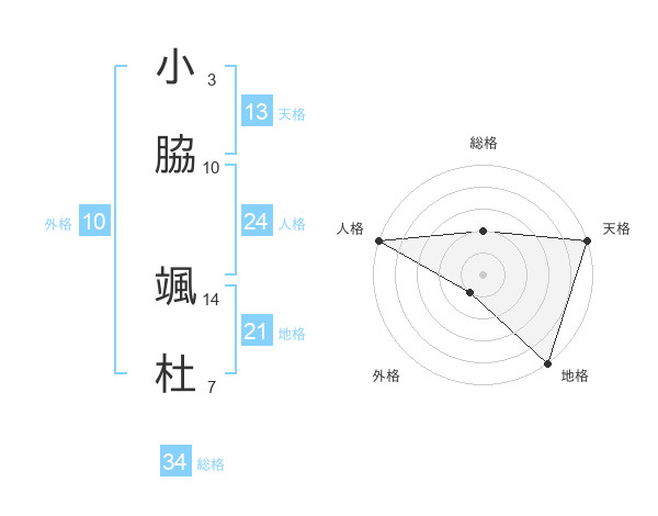 小脇 颯杜さんの天格は13画の5点!