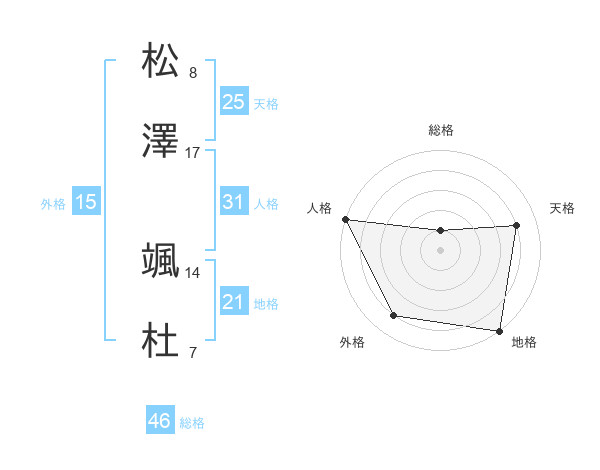 松澤 颯杜さんの人格は31画の5点!