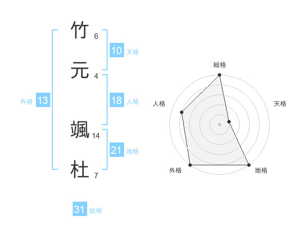 竹元 颯杜さんの総格は31画の5点!