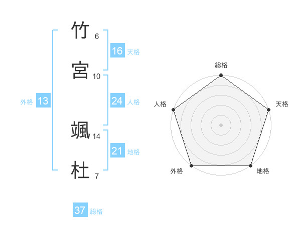 竹宮 颯杜さんを姓名の画数から五運を鑑定