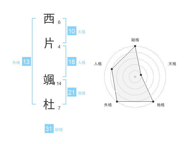 西片 颯杜さんの総格は31画の5点!