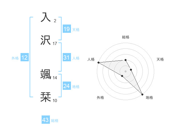 入沢 颯栞さんの地格は24画の5点!