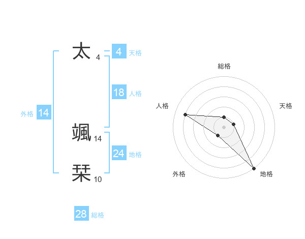 太 颯栞さんの外格は14画の1点!
