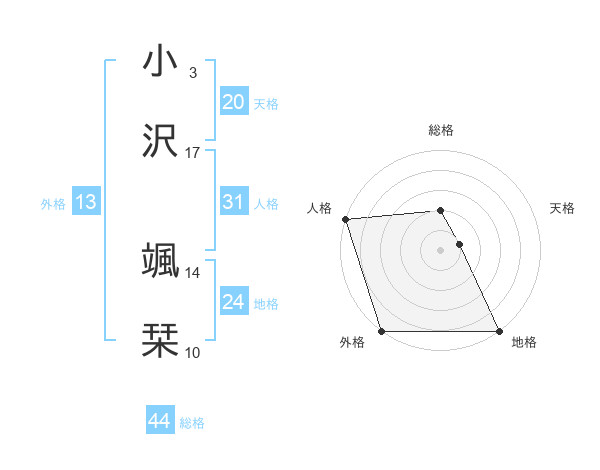 小沢 颯栞さんの外格は13画の5点!