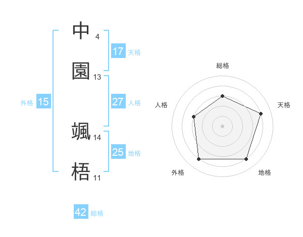 中園 颯梧さんの天格は17画の4点!