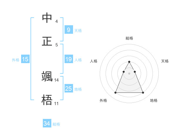中正 颯梧さんを姓名の画数から五運を鑑定